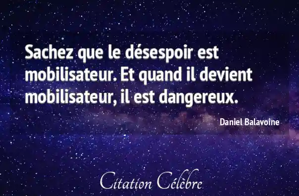 Sachez que le désespoir est mobilisateur. Et quand il devient mobilisateur, il est dangereux.