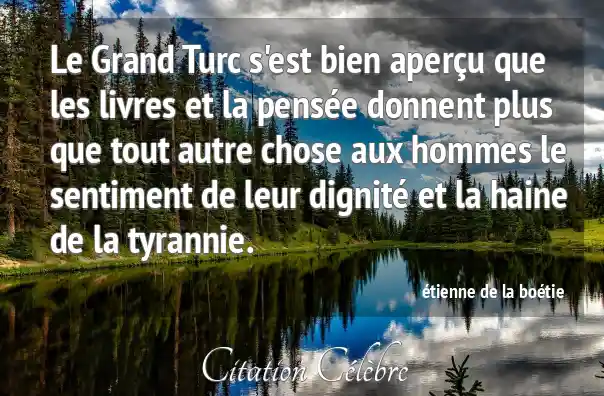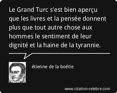 Le Grand Turc s'est bien aperçu que les livres et la pensée donnent plus que tout autre chose aux hommes le sentiment de leur dignité et la haine de la tyrannie.