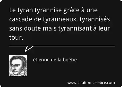 Le tyran tyrannise grâce à une cascade de tyranneaux, tyrannisés sans doute mais tyrannisant à leur tour.