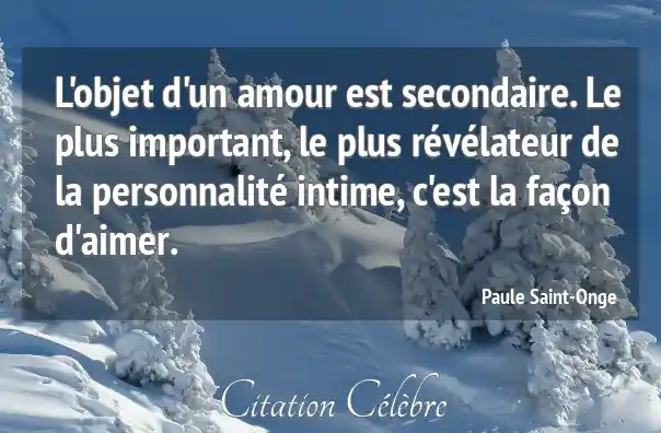 L'objet d'un amour est secondaire. Le plus important, le plus révélateur de la personnalité intime, c'est la façon d'aimer.