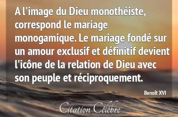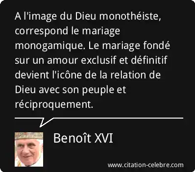 A l'image du Dieu monothéiste, correspond le mariage monogamique. Le mariage fondé sur un amour exclusif et définitif devient l'icône de la relation de Dieu avec son peuple et réciproquement.