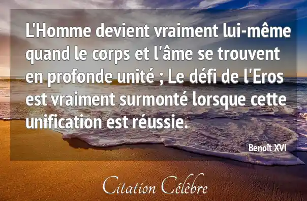 L'Homme devient vraiment lui-même quand le corps et l'âme se trouvent en profonde unité ; Le défi de l'Eros est vraiment surmonté lorsque cette unification est réussie.