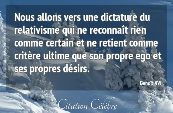 Nous allons vers une dictature du relativisme qui ne reconnaît rien comme certain et ne retient comme critère ultime que son propre ego et ses propres désirs.
