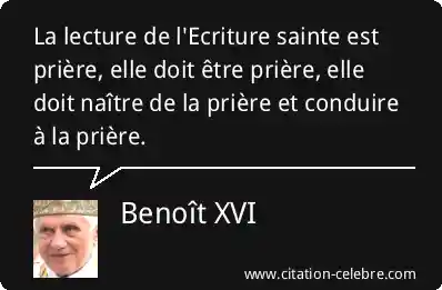 La lecture de l'Ecriture sainte est prière, elle doit être prière, elle doit naître de la prière et conduire à la prière.