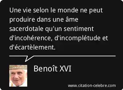 Une vie selon le monde ne peut produire dans une âme sacerdotale qu'un sentiment d'incohérence, d'incomplétude et d'écartèlement.