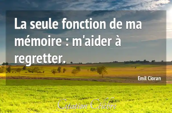Citation Emil Cioran memoire : La seule fonction de ma mémoire : m'aider à regretter....