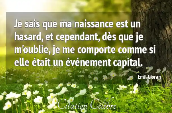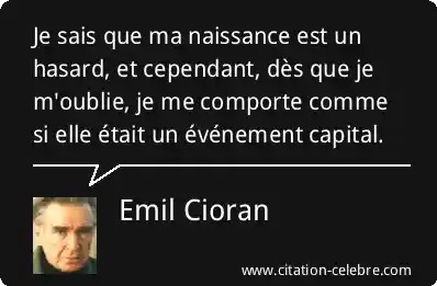 Je sais que ma naissance est un hasard, et cependant, dès que je m'oublie, je me comporte comme si elle était un événement capital.