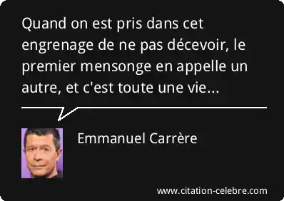 Quand on est pris dans cet engrenage de ne pas décevoir, le premier mensonge en appelle un autre, et c'est toute une vie...