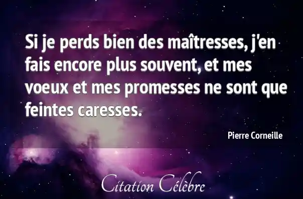 Si je perds bien des maîtresses, j'en fais encore plus souvent, et mes voeux et mes promesses ne sont que feintes caresses.