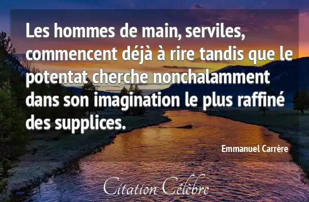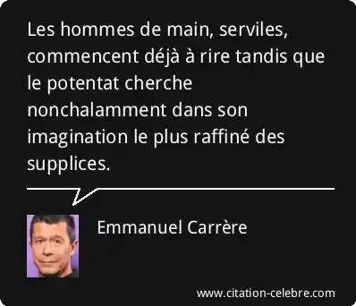 Les hommes de main, serviles, commencent déjà à rire tandis que le potentat cherche nonchalamment dans son imagination le plus raffiné des supplices.