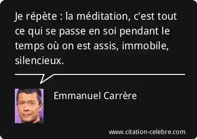 Je répète : la méditation, c'est tout ce qui se passe en soi pendant le temps où on est assis, immobile, silencieux.
