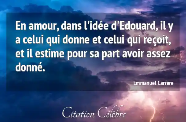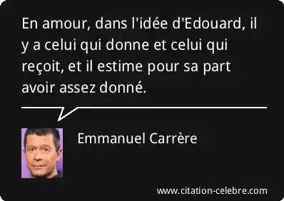 En amour, dans l'idée d'Edouard, il y a celui qui donne et celui qui reçoit, et il estime pour sa part avoir assez donné.
