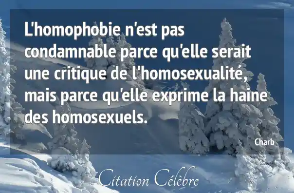 L'homophobie n'est pas condamnable parce qu'elle serait une critique de l'homosexualité, mais parce qu'elle exprime la haine des homosexuels.
