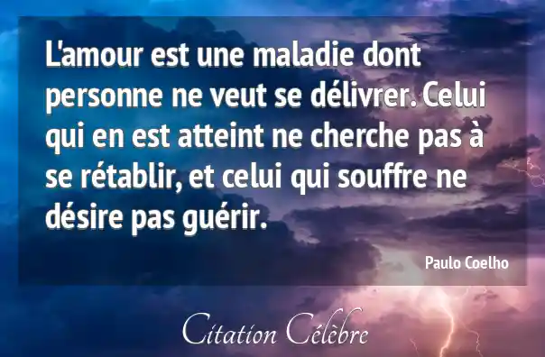 L'amour est une maladie dont personne ne veut se délivrer. Celui qui en est atteint ne cherche pas à se rétablir, et celui qui souffre ne désire pas guérir.