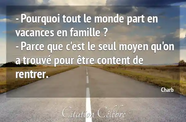 - Pourquoi tout le monde part en vacances en famille ?- Parce que c'est le seul moyen qu'on a trouvé pour être content de rentrer.