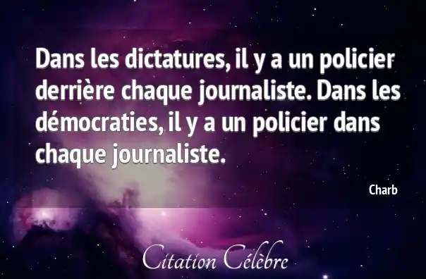 Dans les dictatures, il y a un policier derrière chaque journaliste. Dans les démocraties, il y a un policier dans chaque journaliste.