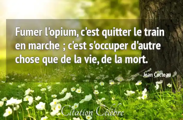 Fumer l'opium, c'est quitter le train en marche ; c'est s'occuper d'autre chose que de la vie, de la mort.