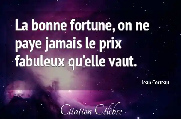 La bonne fortune, on ne paye jamais le prix fabuleux qu'elle vaut.