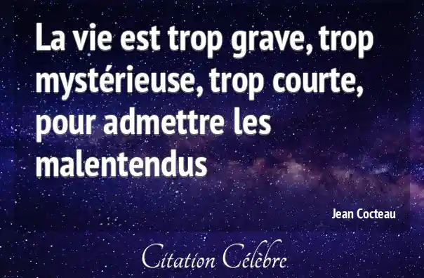 La vie est trop grave, trop mystérieuse, trop courte, pour admettre les malentendus