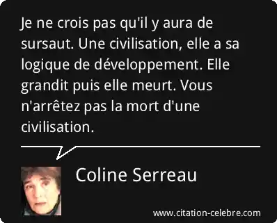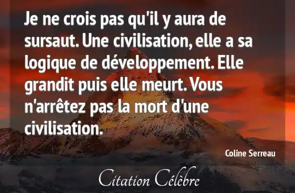 Je ne crois pas qu'il y aura de sursaut. Une civilisation, elle a sa logique de développement. Elle grandit puis elle meurt. Vous n'arrêtez pas la mort d'une civilisation.