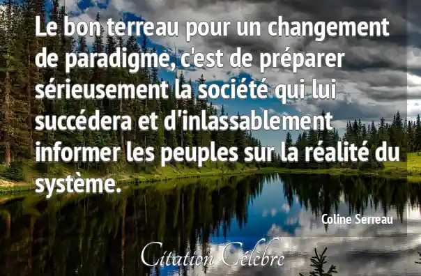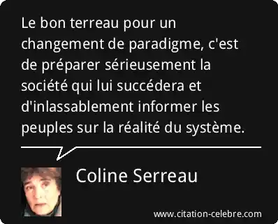 Le bon terreau pour un changement de paradigme, c'est de préparer sérieusement la société qui lui succédera et d'inlassablement informer les peuples sur la réalité du système.