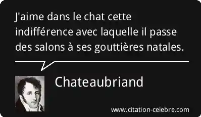 J'aime dans le chat cette indifférence avec laquelle il passe des salons à ses gouttières natales.