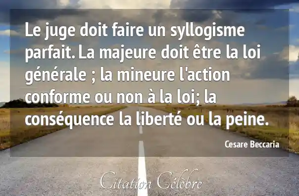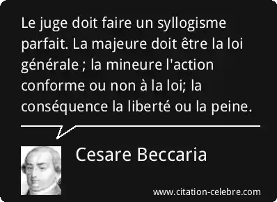 Le juge doit faire un syllogisme parfait. La majeure doit être la loi générale ; la mineure l'action conforme ou non à la loi; la conséquence la liberté ou la peine.