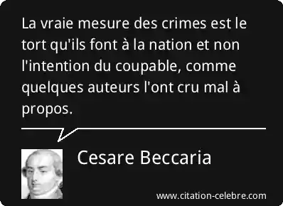 La vraie mesure des crimes est le tort qu'ils font à la nation et non l'intention du coupable, comme quelques auteurs l'ont cru mal à propos.