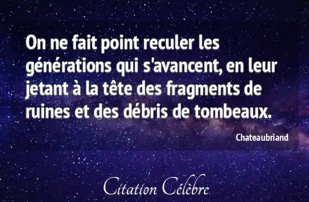 On ne fait point reculer les générations qui s'avancent, en leur jetant à la tête des fragments de ruines et des débris de tombeaux.