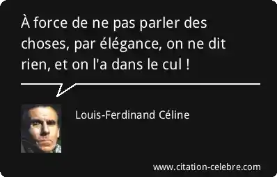 À force de ne pas parler des choses, par élégance, on ne dit rien, et on l'a dans le cul !