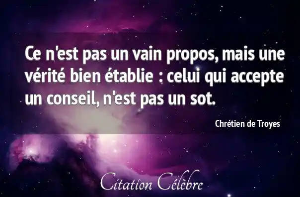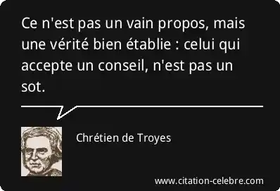 Ce n'est pas un vain propos, mais une vérité bien établie : celui qui accepte un conseil, n'est pas un sot.