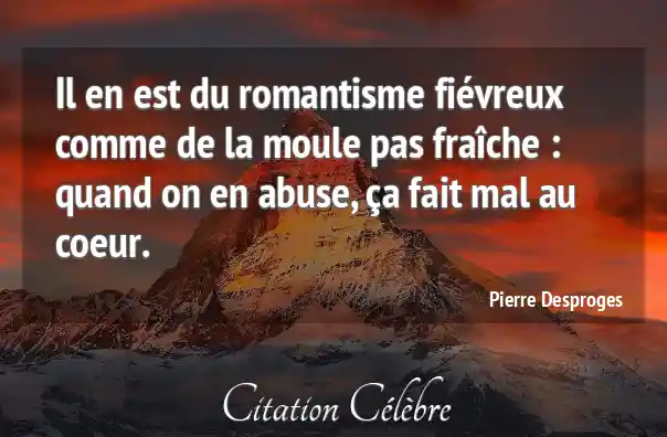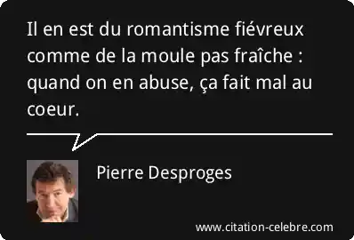 Il en est du romantisme fiévreux comme de la moule pas fraîche : quand on en abuse, ça fait mal au coeur.