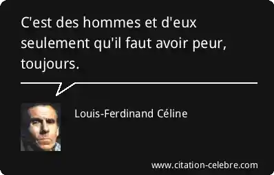 Citation Louis-Ferdinand Céline avoir : C'est des hommes et d'eux seulement qu'il faut avoir peur,...
