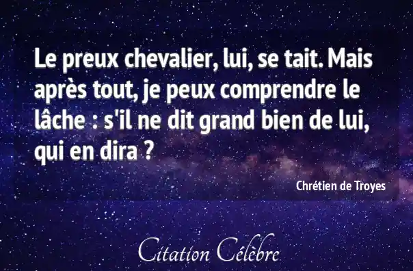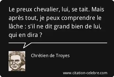 Citation Chrétien de Troyes bien : Le preux chevalier, lui, se tait. Mais après tout, je...