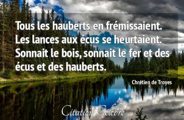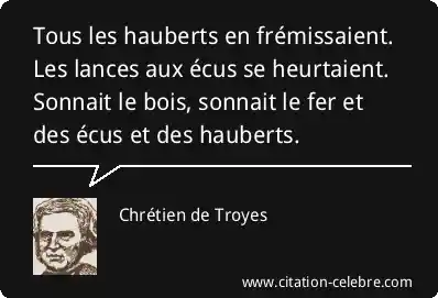 Tous les hauberts en frémissaient. Les lances aux écus se heurtaient. Sonnait le bois, sonnait le fer et des écus et des hauberts.