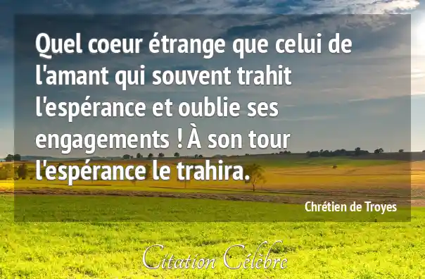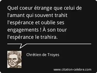 Quel coeur étrange que celui de l'amant qui souvent trahit l'espérance et oublie ses engagements ! À son tour l'espérance le trahira.