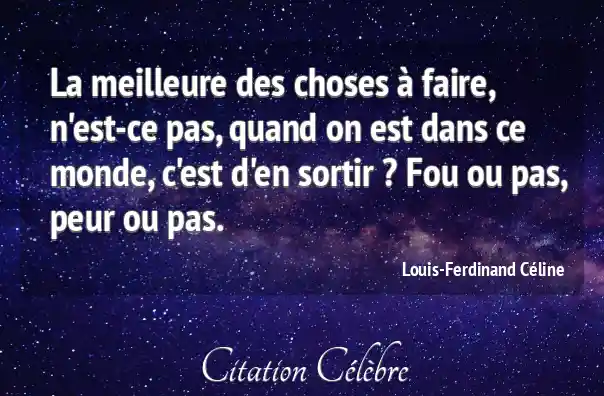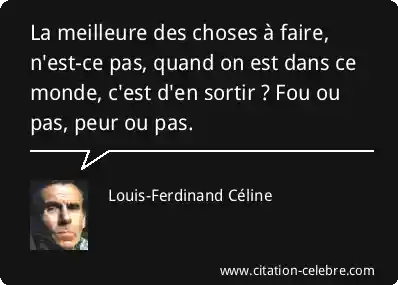 La meilleure des choses à faire, n'est-ce pas, quand on est dans ce monde, c'est d'en sortir ? Fou ou pas, peur ou pas.
