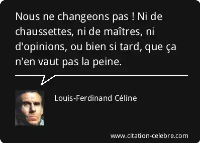 Citation Louis-Ferdinand Céline bien : Nous ne changeons pas ! Ni de chaussettes, ni de...