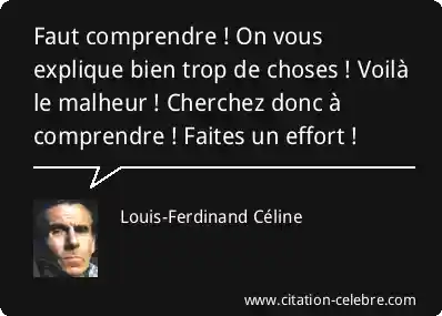 Faut comprendre ! On vous explique bien trop de choses ! Voilà le malheur ! Cherchez donc à comprendre ! Faites un effort !