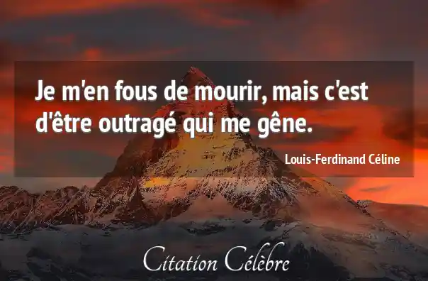 Je m'en fous de mourir, mais c'est d'être outragé qui me gêne.