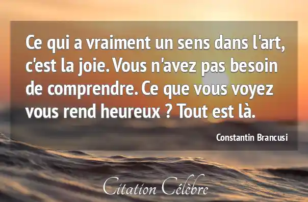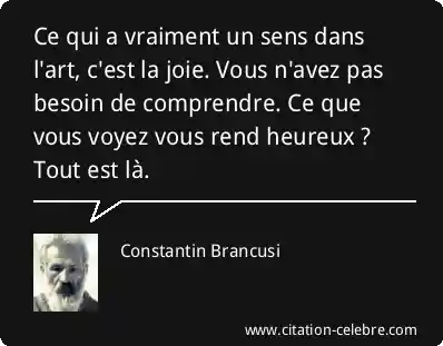 Ce qui a vraiment un sens dans l'art, c'est la joie. Vous n'avez pas besoin de comprendre. Ce que vous voyez vous rend heureux ? Tout est là.
