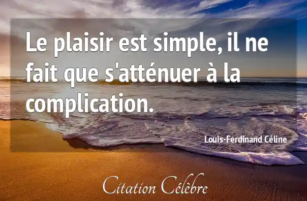 Le plaisir est simple, il ne fait que s'atténuer à la complication.