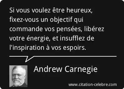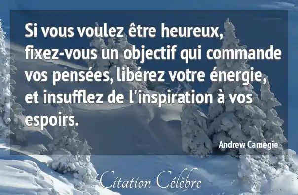 Si vous voulez être heureux, fixez-vous un objectif qui commande vos pensées, libérez votre énergie, et insufflez de l'inspiration à vos espoirs.