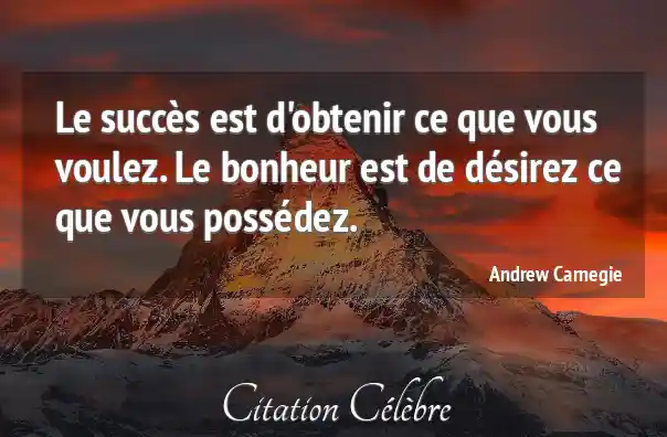 Le succès est d'obtenir ce que vous voulez. Le bonheur est de désirez ce que vous possédez.