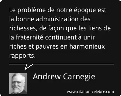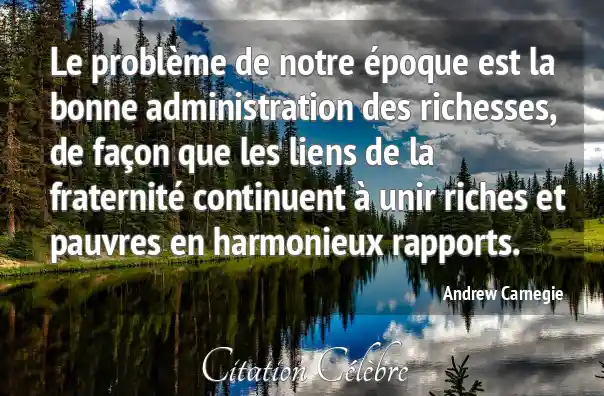Le problème de notre époque est la bonne administration des richesses, de façon que les liens de la fraternité continuent à unir riches et pauvres en harmonieux rapports.