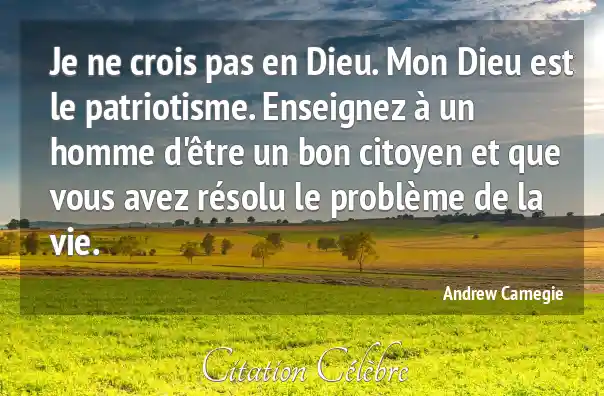 Je ne crois pas en Dieu. Mon Dieu est le patriotisme. Enseignez à un homme d'être un bon citoyen et que vous avez résolu le problème de la vie.
