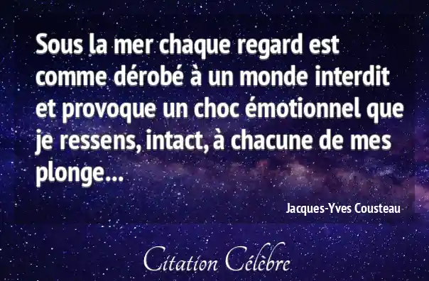 Sous la mer chaque regard est comme dérobé à un monde interdit et provoque un choc émotionnel que je ressens, intact, à chacune de mes plonge...