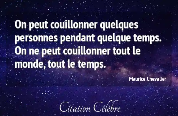 On peut couillonner quelques personnes pendant quelque temps. On ne peut couillonner tout le monde, tout le temps.