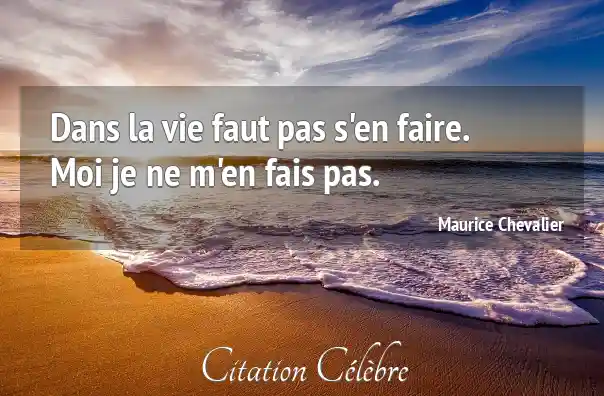 Dans la vie faut pas s'en faire.Moi je ne m'en fais pas.