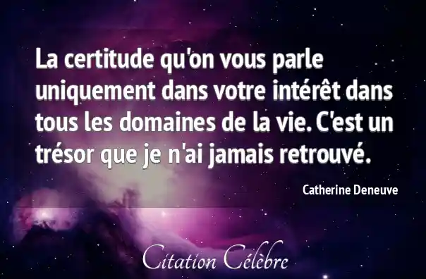 La certitude qu'on vous parle uniquement dans votre intérêt dans tous les domaines de la vie. C'est un trésor que je n'ai jamais retrouvé.